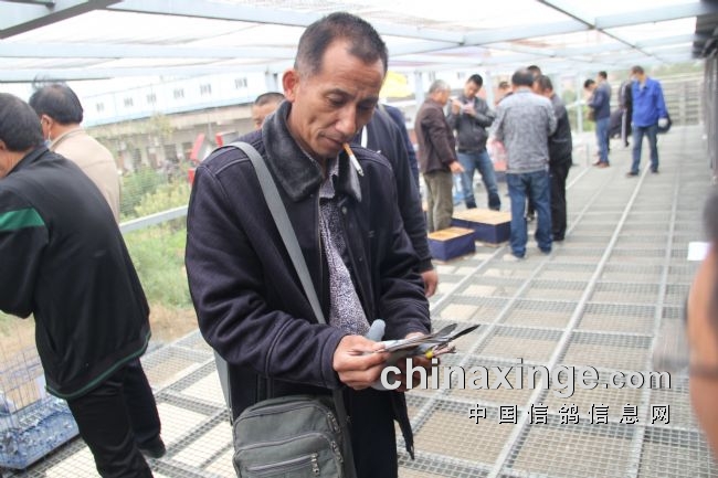探视鸽子的鸽友,很多都在用手机拍照,用放大镜看眼睛,显得很老道,并且记下详细的笔记,据他们讲主要是为了没来现场的鸽友看的,尽量仔细。
