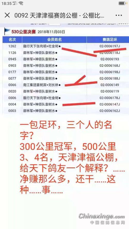 11月3日,天津市津福赛鸽公棚完成536公里决赛后,鸽友圈突然爆出“一包足环三位鸽主”的图片并随之引发众多鸽友质疑,要求公棚给出解释,11月4日凌晨,公棚紧急回应,发布相关视频予以澄清,公告原文如下: