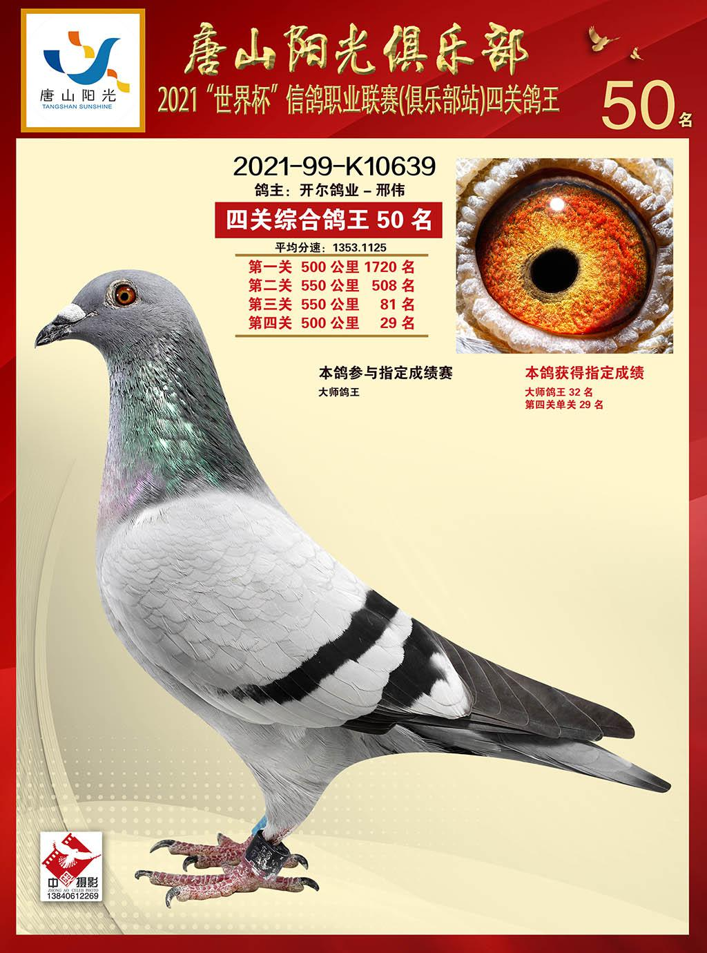 21年唐山阳光赛鸽俱乐部第一关500公里271名,第四关500公里157名,四关综合224名!