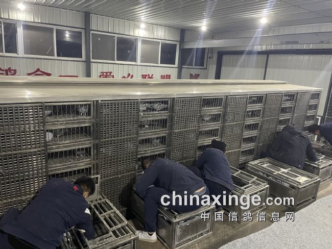 2月6日晚,万羽赛鸽首次进行集鸽,棚上工作有条不紊,仅用时4个半小时就全部完成装笼工作,四辆放飞车在公棚内等待第二天的出发。开尔公棚不管是在训放还是比赛期间,集鸽工作都在下午或傍晚进行,目的让赛鸽得到更好的休息。