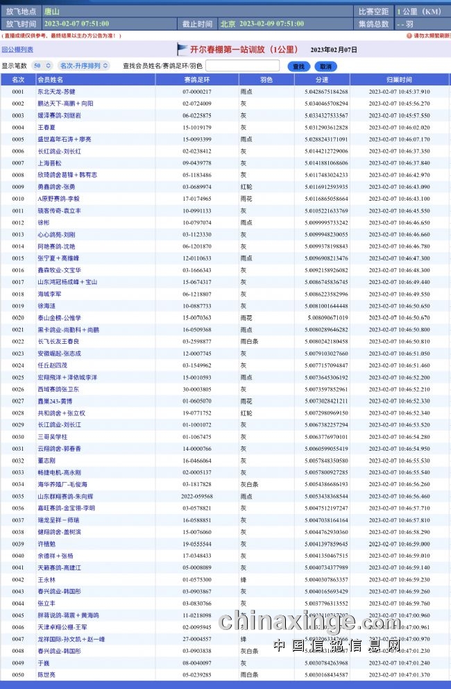 训放期间,开尔春棚开启了数据扫描直播,解除了鸽友们对扫描的顾虑,可在中信网上查询。