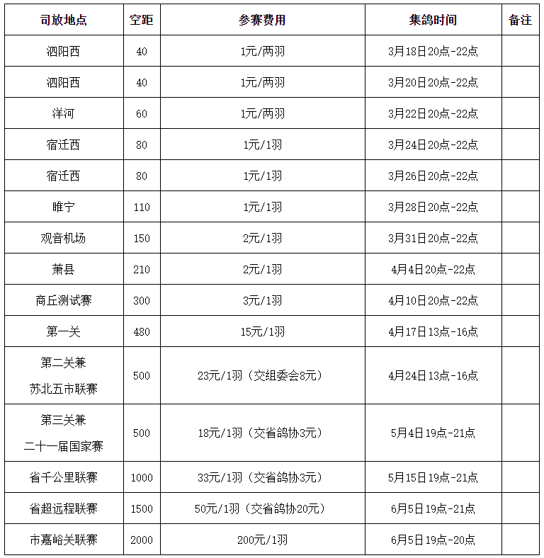 淮安市信鸽协会2023年春季竞赛计划