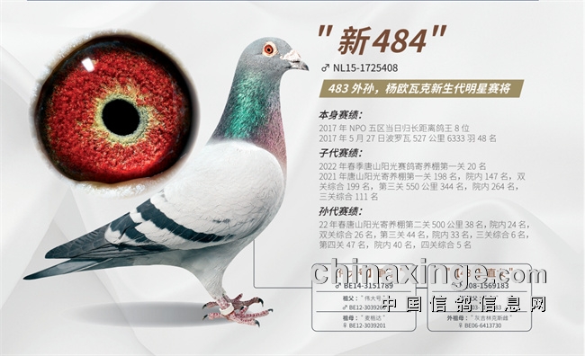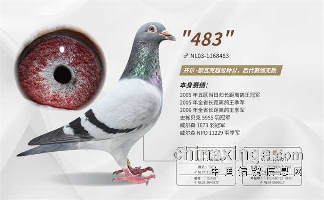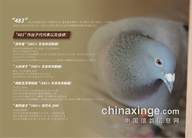 【483】的优秀后代在国内更是享有盛名!无论是掠夺者所出的【超速时分】,【超速精灵】等,还是之后的【新483】和【新484】后代,以卓越的自身实力将家族传承和鸽体的优秀都呈现在大家眼前!