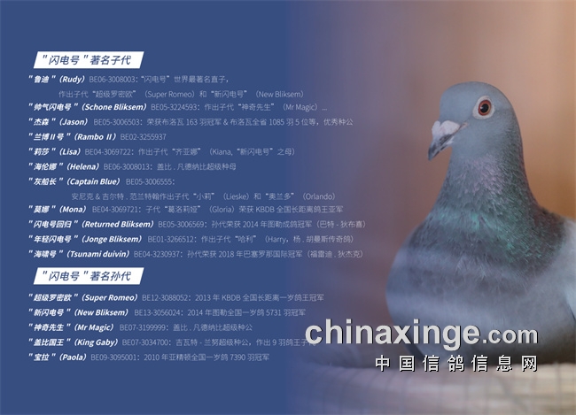 2018年盖比先生由于身体告别赛鸽运动,它的著名鸽系【闪电号】交给了毕生挚交邢总,盖比王朝得以在国内延续,之后【闪电号】后代在国内成就灿若繁星!这样以实力赛绩闪耀在鸽坛的盖比王朝,一定是自开尔引进第一羽种鸽的首选!