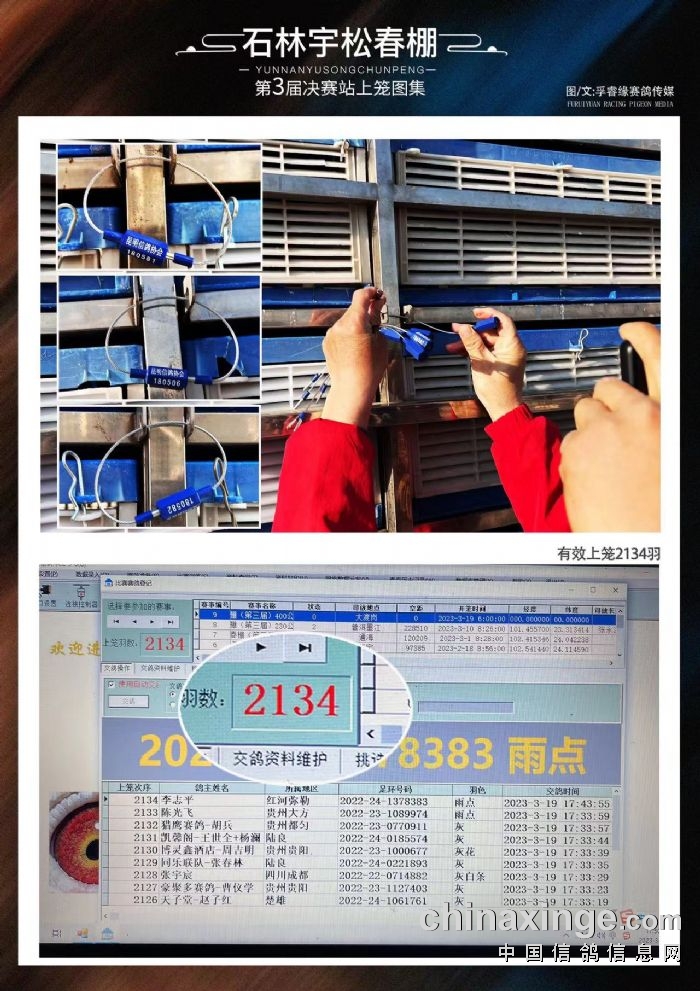 云南宇松第三届春赛从2022年5月开始收鸽,截止到10月份收鸽超1.2万羽。经过多次训放,40公里查棚上笼9765羽,两日共计归巢8837羽。