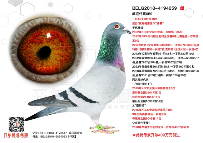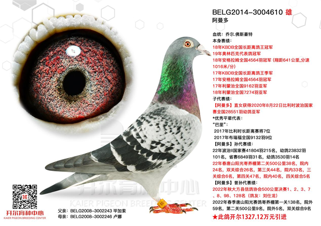 当然对于【阿曼多】这位世界顶级赛将的非凡成就,很多鸽友都已经十分了解!之后它退居二线,它以天价身价被开尔收藏也被鸽友津津乐道,那么顶级赛将【阿曼多】入驻开尔欧洲育种中心之后其后代发挥如何,很多鸽友也是抱有相当高的期待!实际上【阿曼多】后代在国内外赛场一直都有非常出色的发挥!