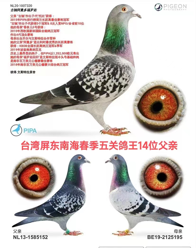 同时在国内刚结束的台湾屏东南海春季五关艰难赛事中,【阿曼多】与文斯特拉的【福罗佑】合作育种直孙所出的【阿曼多】的曾孙也取得了鸽王14位的高位赛绩!