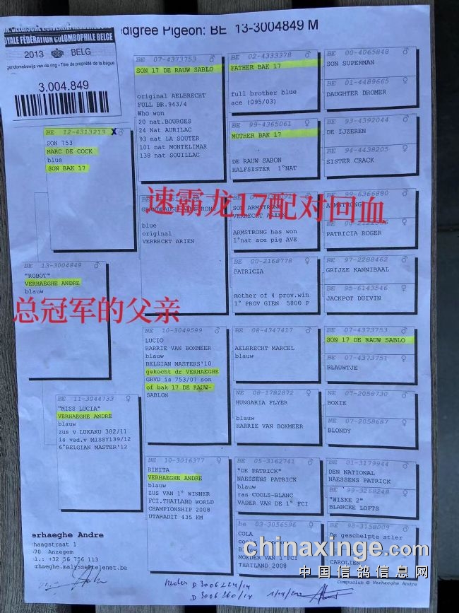 强强联合作出:23年比利时亚精顿成鸽组全国冠军