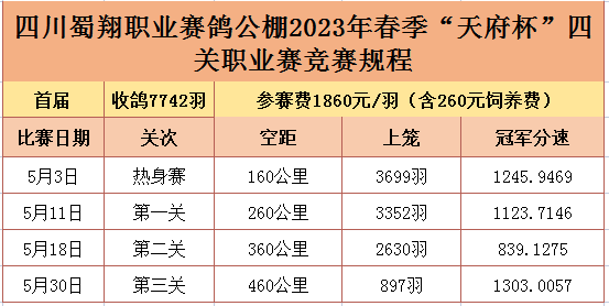 四川蜀翔2023年春赛不仅是全川唯一获准举办“天府杯”的比赛,由省鸽协举办和监管并由省体育局备案,同时采用全球最稳定的德国托瑞斯扫描计时器(天津开创同款),确保比赛公正性。此外,100%尊重规程、执行规程,即使归巢不好,也完全按照规程办事。四川蜀翔用行动真正做到“让每一位参赛者感受到比赛的公正”。