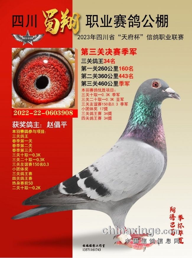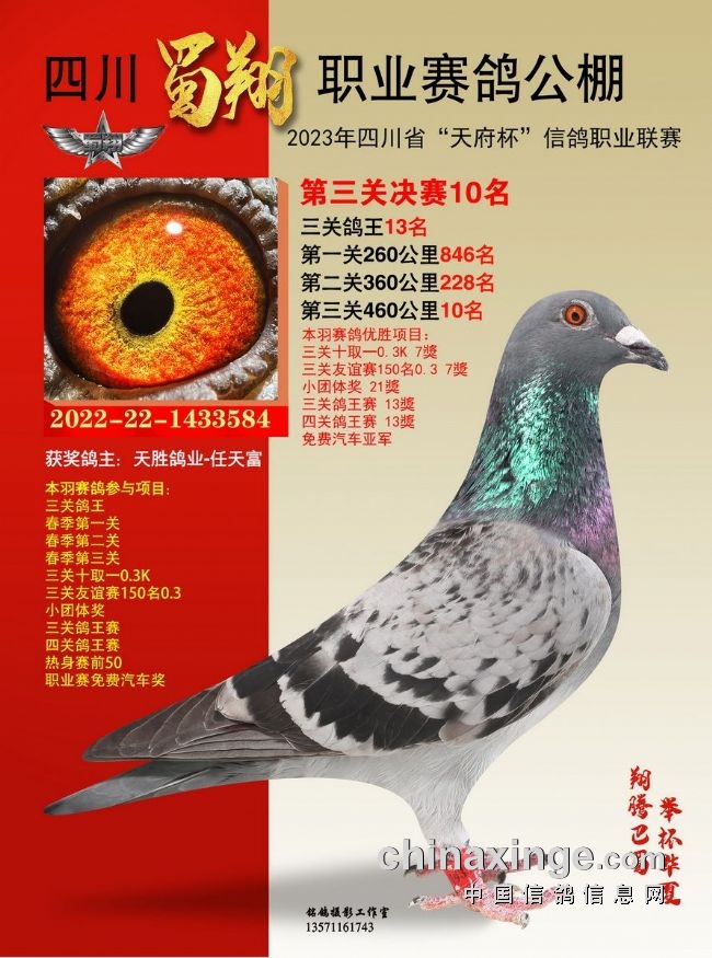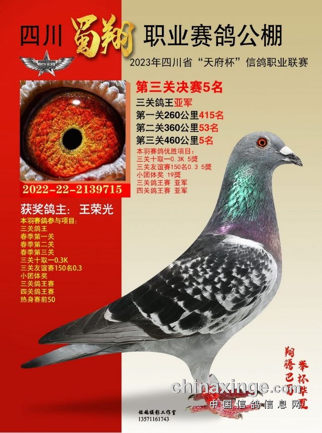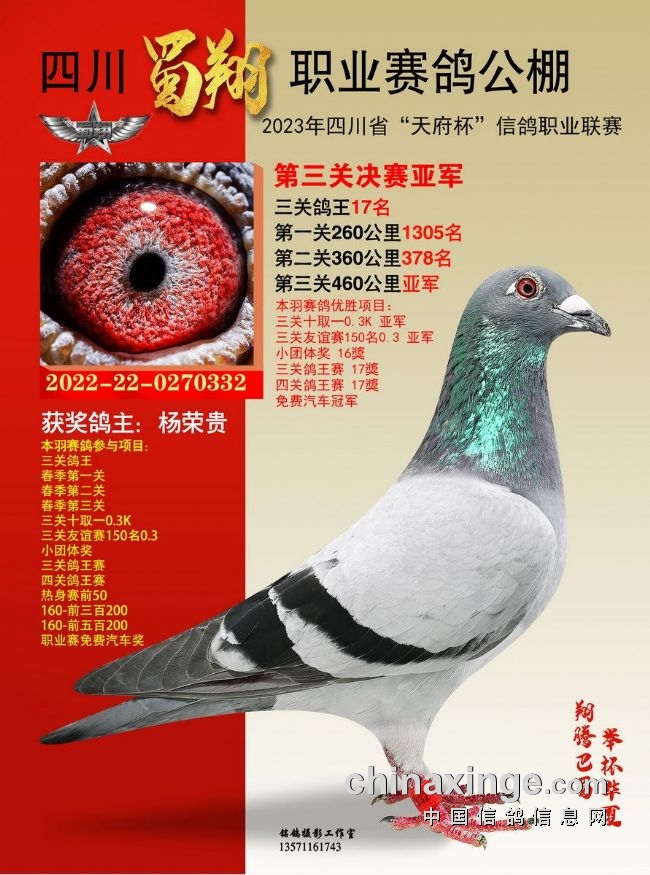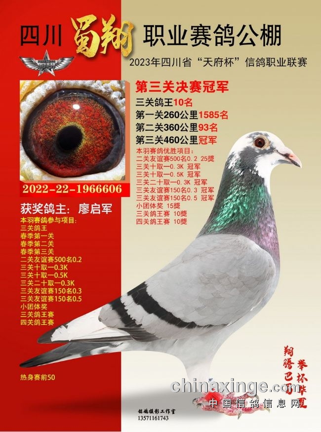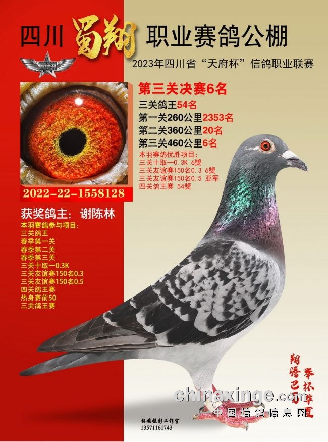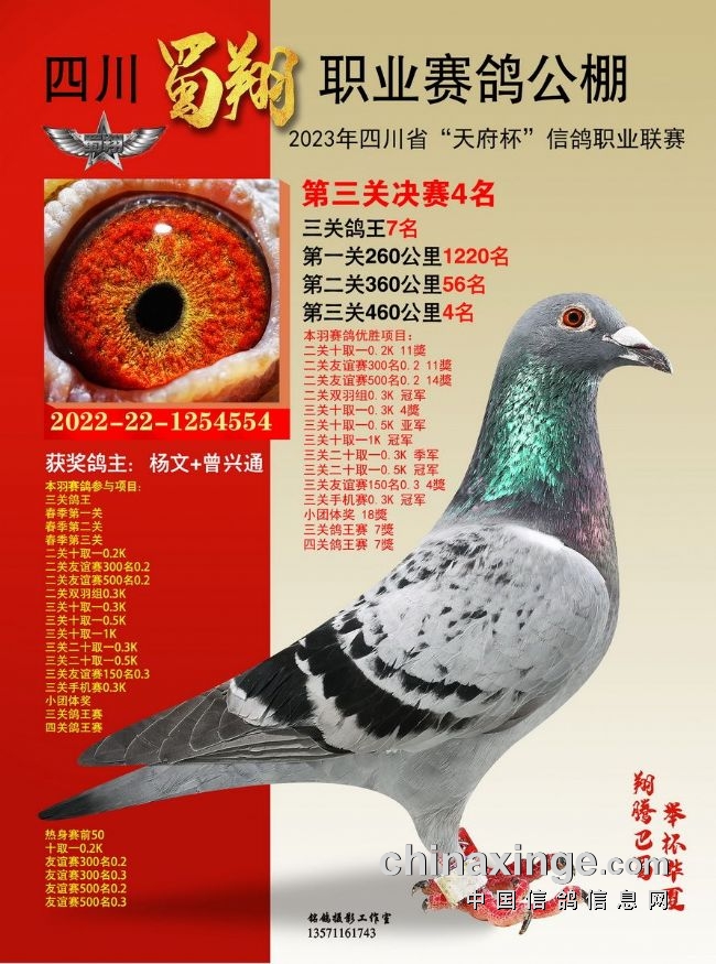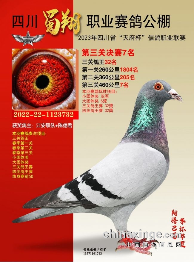 作为全四川唯一获准举办“天府杯”(省体育局备案、省鸽协举办监管)的比赛,也作为四川蜀翔挑战职业公棚赛的首次试炼,四川蜀翔职业赛鸽公棚2023年首届春赛备受瞩目。比赛收鸽7442羽,历经14站严格训放,热身赛、三关正赛残酷考验,英勇的川鸽小将们两度遭遇酷夏高温炙烤,直面高山盆地赛线考验,不少赛鸽夜行也誓要归返,彰显不死必归之势。名家铭鸽同场竞技,残酷赛事考验极限,含金量不言而喻。