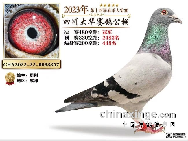 办赛十四载,时间是最好的沉淀。四川大华2023年收费站上笼5922羽,经过十几站训放、两关正赛的磨练,4月25日,3923羽精英赛鸽走上决战赛场。将近七个小时后,周刚的一羽鸽子飞回来了,足环号22-22-0093357,分速1209.973米/分,拿下这场比赛的冠军,冠军鸽主还有几羽鸽子回来了,但都在千名之后,3357用实力证明了“师傅领进门,修行在个人”,好样的!