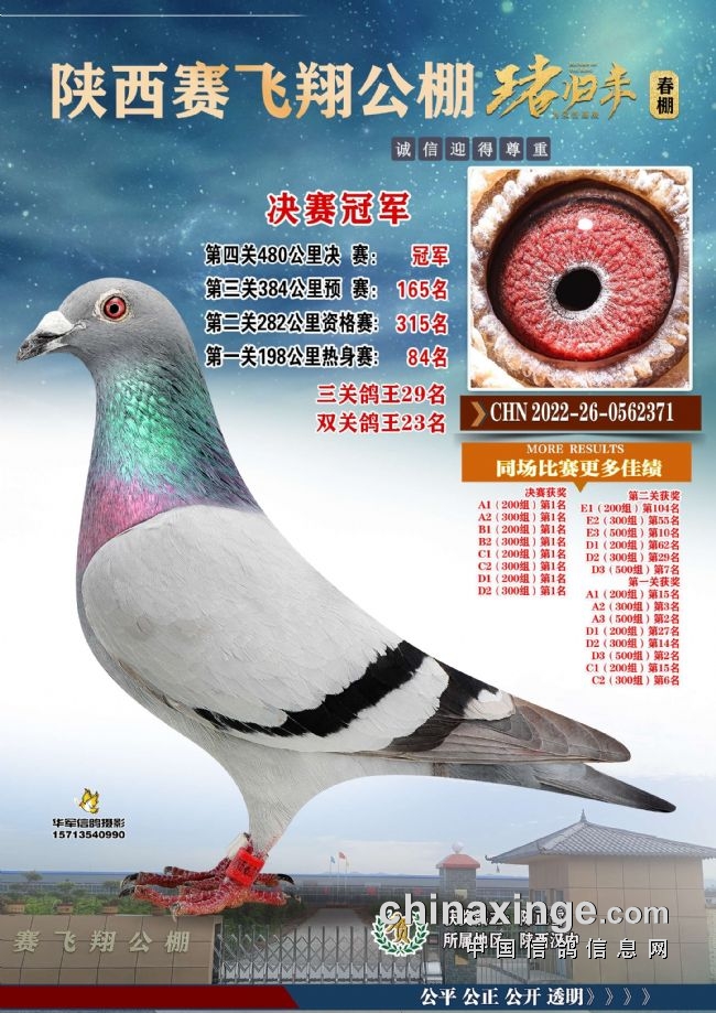 经过两个多月的锤炼,陕西赛飞翔完成了四关比拼,陈正雪的2022260562371飞鸽拔得头筹,分速1275.6535米/分,此时不禁感叹“待到金榜题名时,它在笼中笑。”
