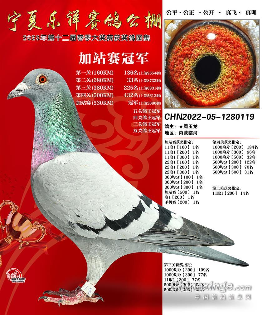 宁夏乐祥的530公里加站赛冠军也是妥妥的实力战将,凭借一关136名、二关33名、三关225名、四关432名、加站赛1名的成绩夺得双关鸽王冠军、三关鸽王冠军、四关鸽王冠军还有五关鸽王冠军。我就问问,你这么多冠军傍身,骄傲了吗?