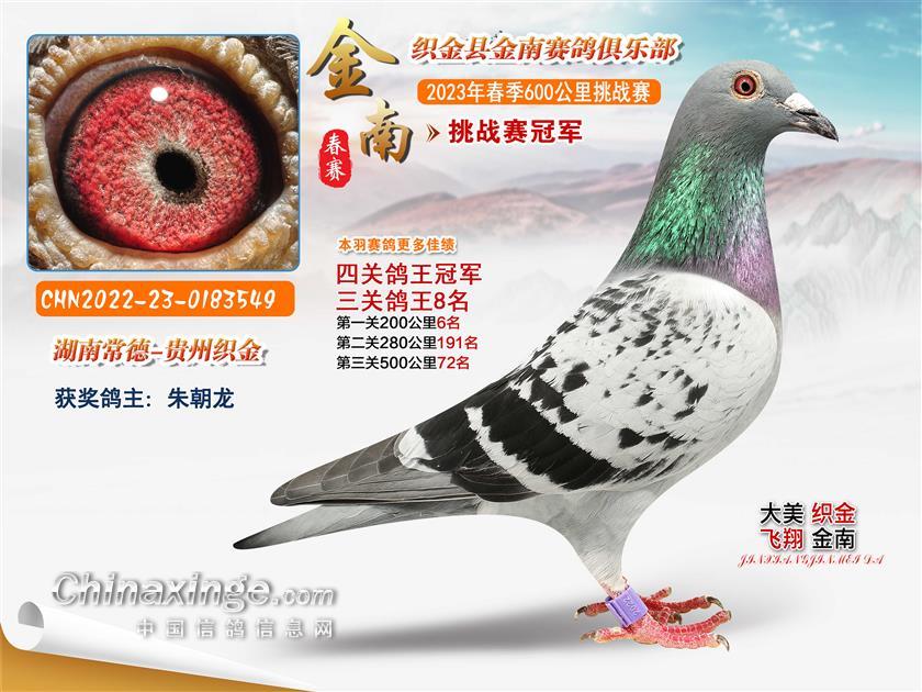 5月13日13时25分,首羽赛鸽归巢,是朱朝龙环号2022-23-0183549的小将,空距613.646公里,分速482.4857米/分,一举拿下冠军,同时拿下四关鸽王冠军,三关鸽王8名。他的另一羽毛环号2022-23-1090559的赛鸽拿下挑战赛亚军。