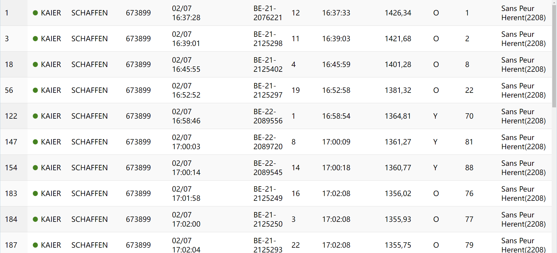 本场比赛全国总冠军去年作为一岁鸽参赛,就曾斩获22年查特路I国家赛9723羽29名,全国大区一岁鸽冠军!PIPA排行榜比利时全国赛8场比赛最佳一岁鸽鸽王15位,成为开尔育种中心实战台柱之一!今年的6221继续征战欧洲赛场,以多个赛场的高位发挥成为开尔之光闪耀在国际鸽坛!