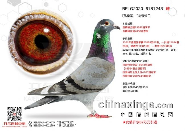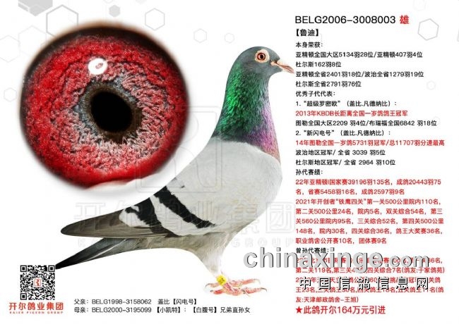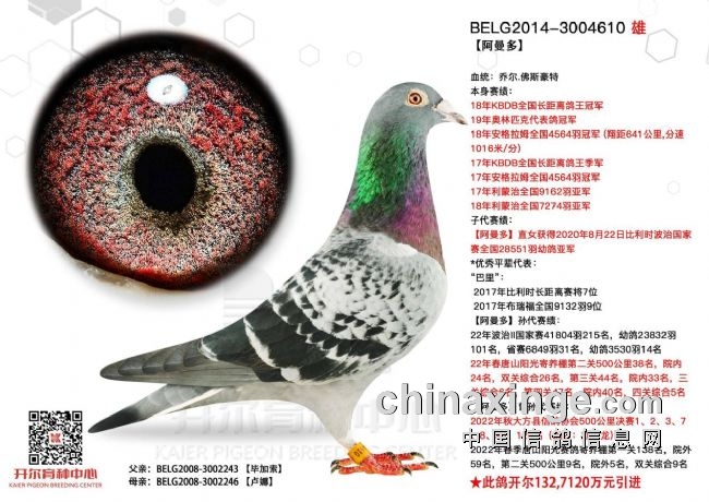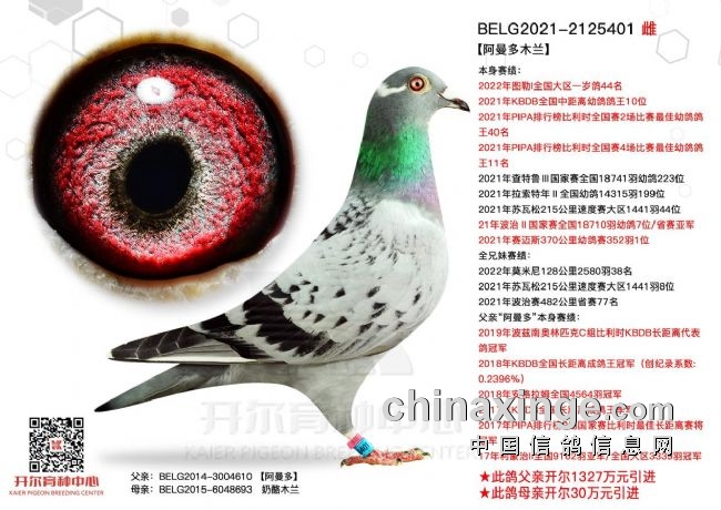阿曼多作育同窝子代分获16181羽18名及21年KBDB全国中距离幼鸽鸽王10位。