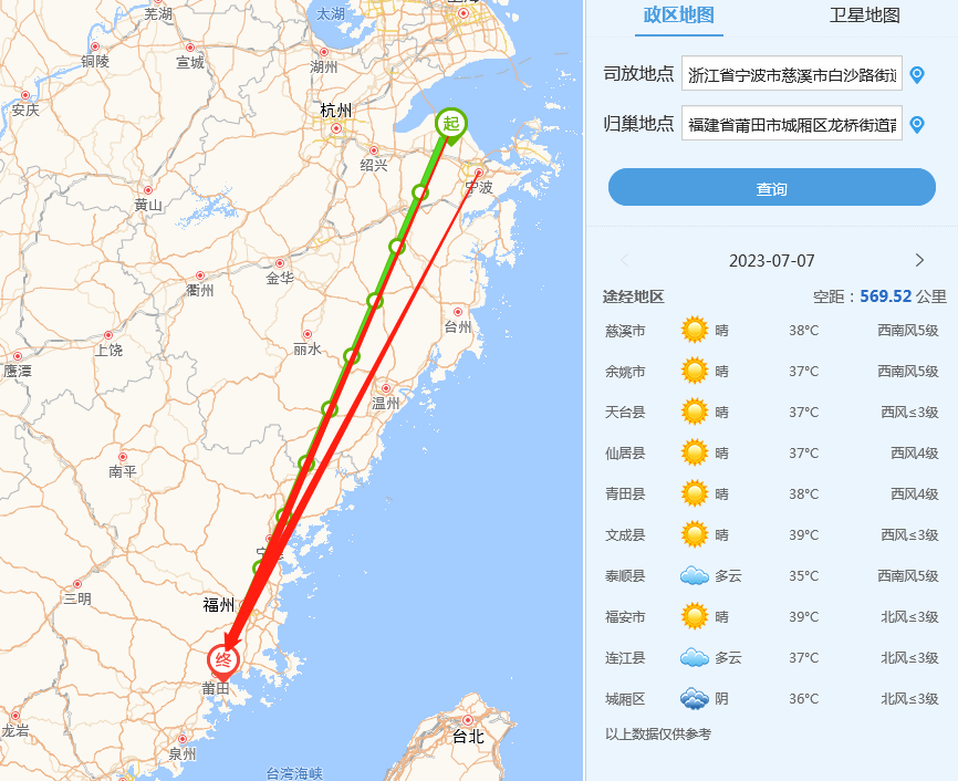 7月6日5:25,福建莆田赛鸽俱乐部2023年夏季慈溪精英赛在慈溪放飞,空距585公里,共计570羽赛鸽参赛。比赛当天无鸽归巢,7月7日上午7点13分首羽鸽子报到,至9点已有5羽赛鸽归巢。查看归巢数据>>