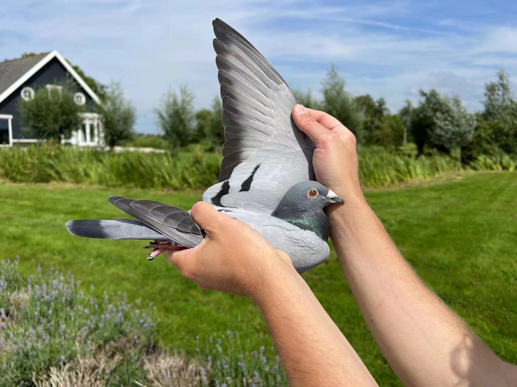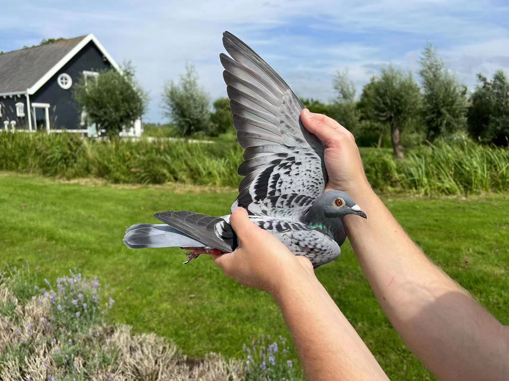 雷韦克当地天气预报最高33℃,已经是今年前所未有的高温,但站在室外的巴斯,感觉远远超过这个温度。下午2点刚过,正是雷韦克最热的时候,两羽赛鸽经过长达7个小时的飞行,同时到达佛科克鸽舍,进棚时间定格在14:12:18和14:12:19,相差只有0.1秒,这对2022年的一岁小雌拿下了5区东部维尔宗570公里1932羽省赛冠军、亚军(7435羽国家赛6、7名)。