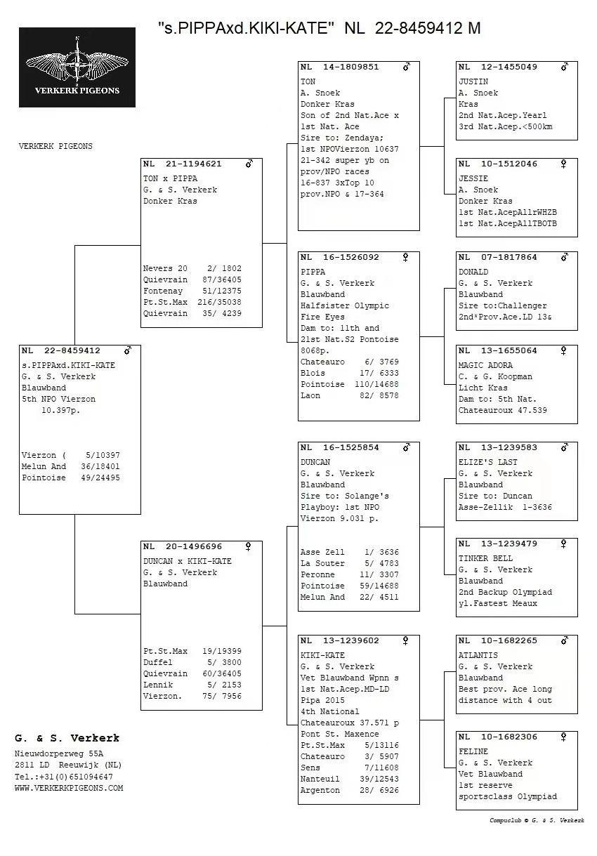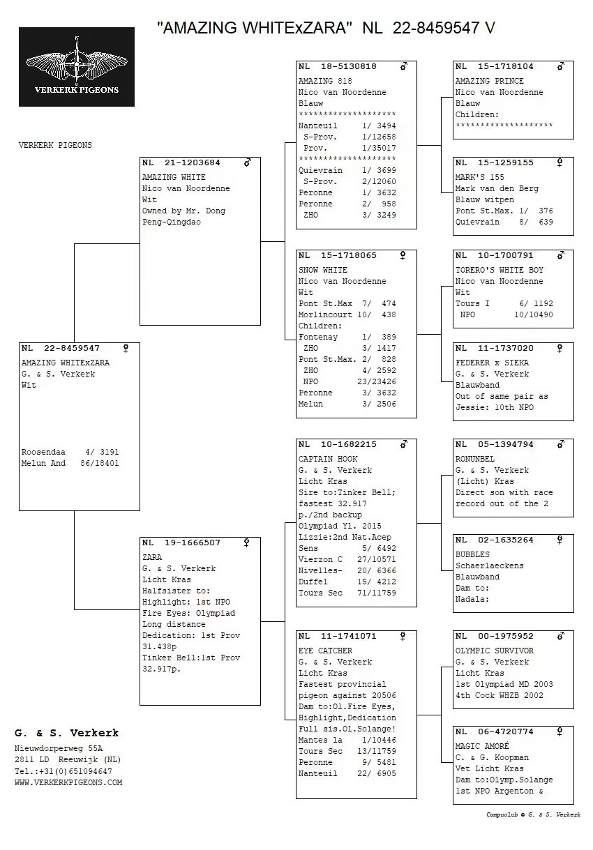佛科克“肮脏哈利”ד纳尼亚”直子,本身获2017年PIPA全距离全国鸽王、南荷兰全省中距离鸽王亚军、奥丝泽利3636羽季军等。