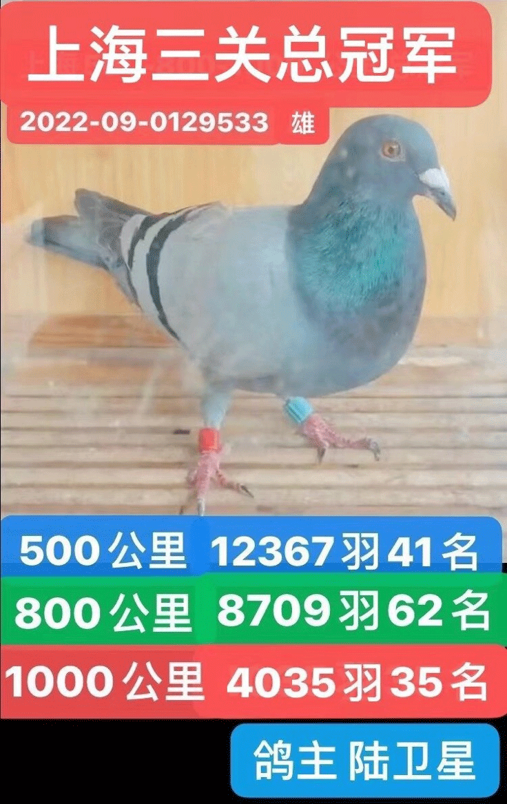 三关鸽王总冠军:鸽界老将陆卫星的22-0129533赛鸽