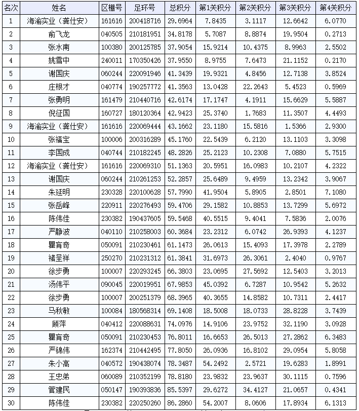 俞飞龙的21-0181951赛鸽,荣获500公里705名、800公里773名、1000公里804名、1700公里殿军、宝山区冠军,以34.8178的总积分顺利拿下四关鸽王总亚军。张水南的20-0125785赛鸽在长距离、超长距离表现优异,获得500公里1968名、800公里916名、1000公里362名、1700公里46名,以37.9054的总积分荣获四关鸽王总季军。长距离名家姚雪中的17-0350426赛鸽在前三关排名靠后的情况下,1700公里获得季军,反超了其他赛鸽,获得四关鸽王总殿军。