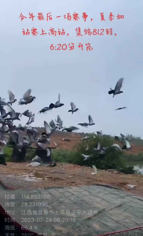 在完成三关幼鸽大赛之后,福建漳州市2023年夏季漳龙联赛加赛一场500公里,继续挑战高温天气。7月24日早上6点20分,第四关加站赛在江西上高开笼放飞,空距大约500公里,共计802羽赛鸽参加比赛。