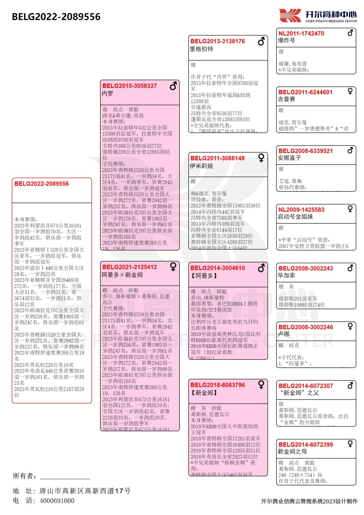 欧洲经典赛事亚精顿首场比赛,开尔战将仍旧逆风突围,前100进14羽,并且将全国大区一岁鸽冠军、季军收入囊中,冠军9556同样出自阿曼多与新金姆的结合,继承了两羽顶级赛将决胜优势,顶风飞出了1138米/分的高分速。亚精顿的第二场比赛开尔前100进12羽,9556依然领翔开尔战队,分速达1231米/分,成为全场焦点。