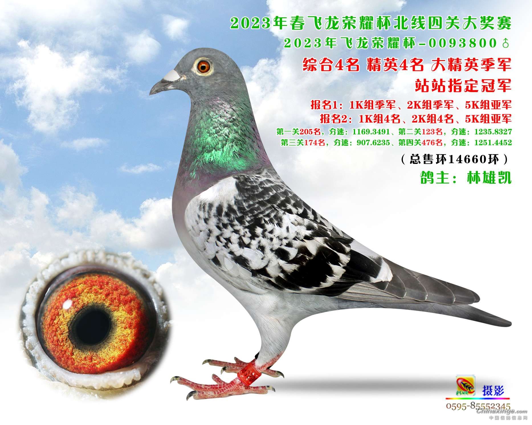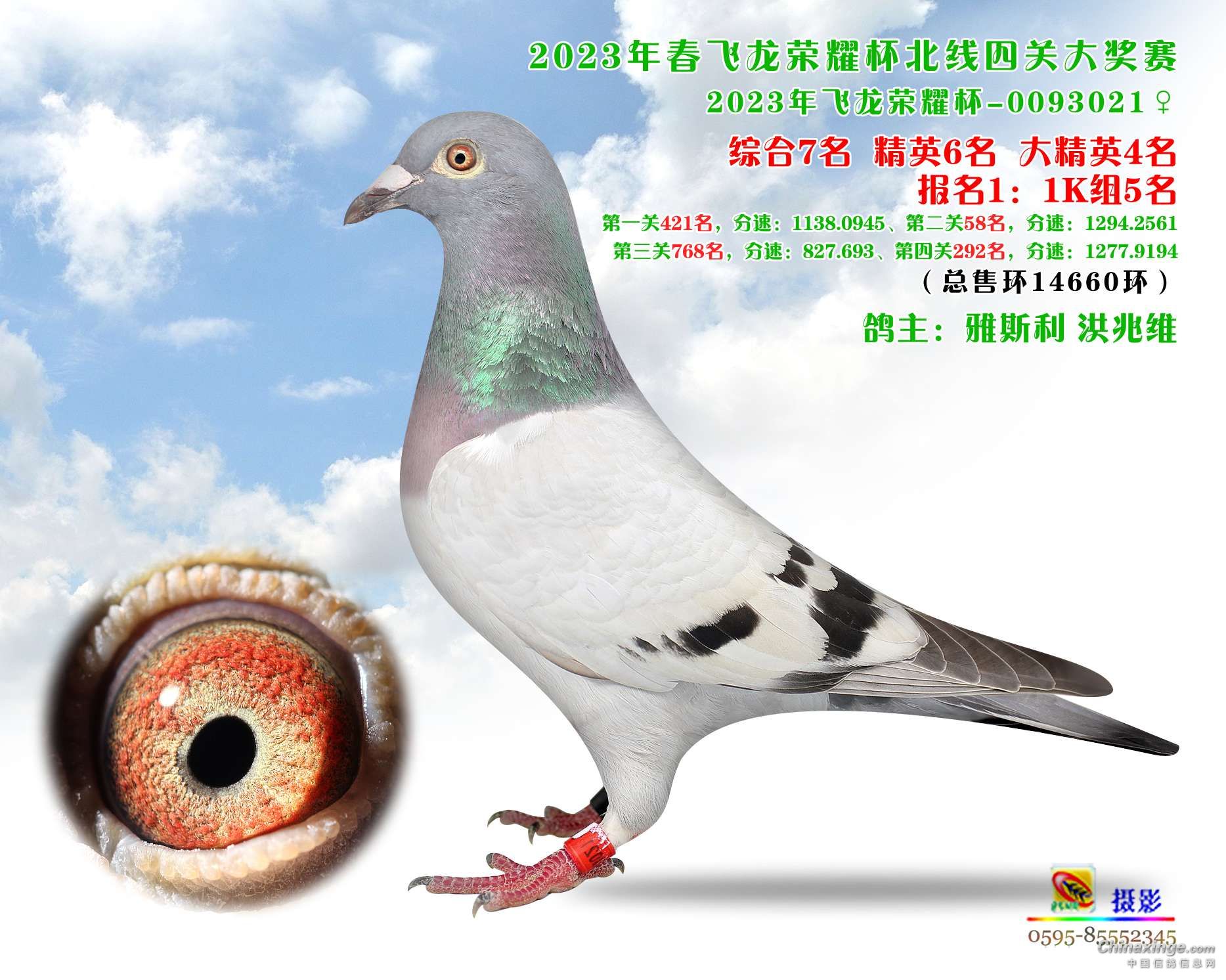 飞龙“荣耀杯”比赛今年售环14660枚,第一关集鸽8483羽,5月20日在福鼎放飞,空距335公里;第二关集鸽5882羽,5月29日在平阳放飞,空距360公里;第三关集鸽4605羽,6月5日在乐清放飞,空距450公里;第四关集鸽2329羽,6月12日在台州放飞,空距500公里。到最后一关上笼只剩下15.87%的鸽子,由此可见荣耀杯的难度之大。