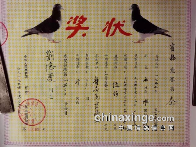 刘先生输出给鸽友何宏生的14-073104(培尔琴x吴淞),2018年超远程张掖赛获14名;输出给付戈潮的86-259170,1988年飞山城重庆录得冠军;输出给鸽友陈海云的培尔琴,曾获得黄浦区二千公里冠亚军。刘先生自家的培尔琴,也飞过武威二羽、张掖二羽、清水堡一羽,以及兰州、天水、北京亚运会等,捷报频传。