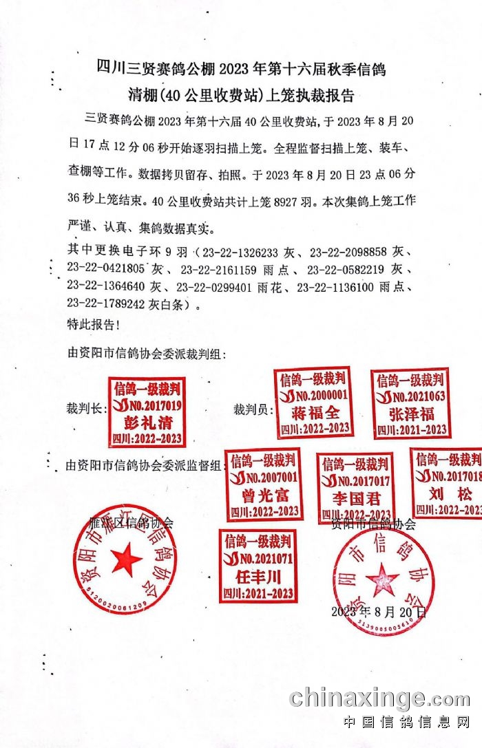 八月入秋以来,全国各地天气逐渐凉爽起来,我们的秋棚赛也进入开始强制家飞阶段,赶早的贵州、云南等地公棚更是已经开训,并打响了查棚资格赛。这两天,三贤公棚、博翔公棚等两家秋棚也打响四川秋棚第一枪,进行了清棚收费站,比赛情况简述如下: