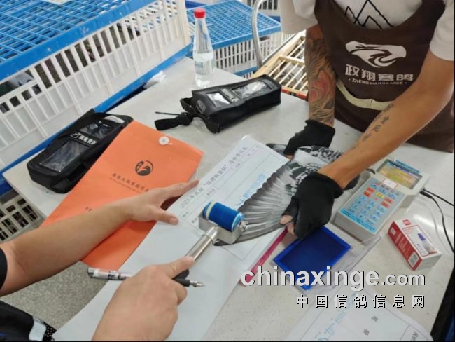 每一羽赛鸽严格按照幼检所规定的各个环节进行检验,包括环号核对,信息采集与录入,加盖滚章、留档等。最后对2023年“悍将联盟杯”职业鸽舍公开赛第二次注册(总检)专用印章进行销毁。