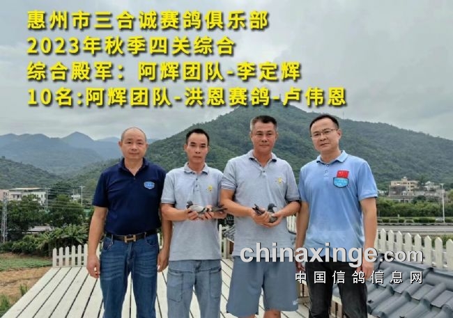 8月20日,145羽小将继续迎战第四关,百羽精兵争夺最后的荣耀,空距420公里,有效分速700米/分。放飞地天气阴,能见度不高,归途有雨,所有参赛鸽再遇恶战,最终仅36羽勇士回归。肖红仁团队伍冬海0569931的赛鸽拿下冠军;惠赢团队赖原聲0563276的赛鸽获得亚军;阿辉团队李定辉0560597的赛鸽获得季军。