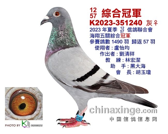 经过大风大浪洗礼的1657羽赛鸽,含金量都是杠杠的!以下是部分鸽会优胜鸽欣赏: