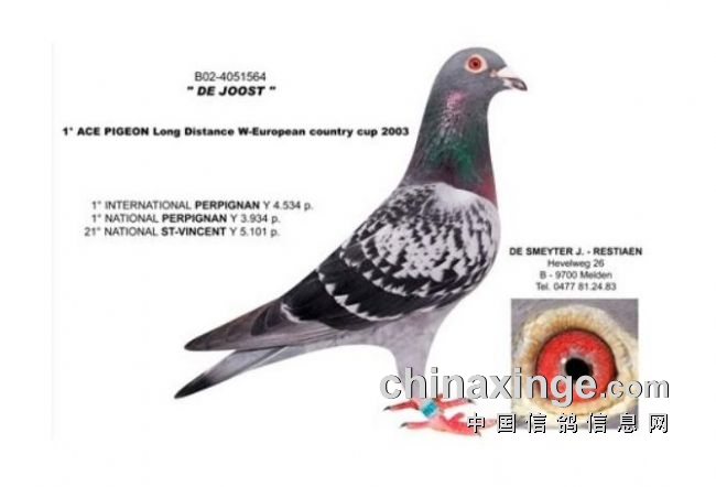 2003年波品纳国际赛一岁鸽4534羽冠军“佑斯特”(Joost)