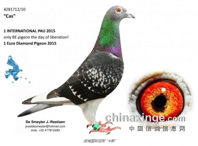 2015年波城国际赛成鸽组9062羽冠军“卡斯”(Cas)