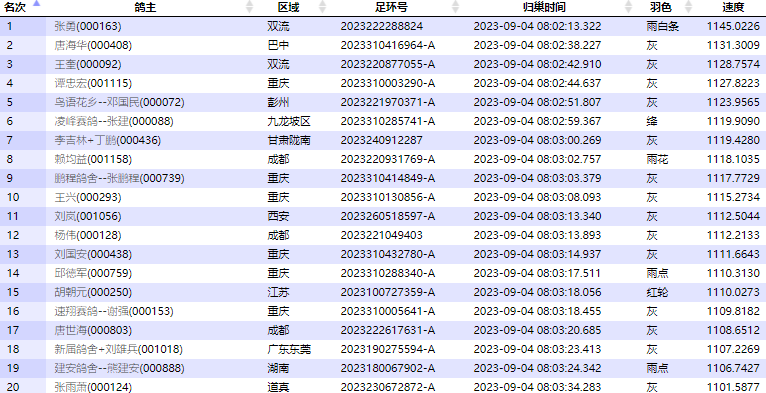前20名报到数据及集鸽图片