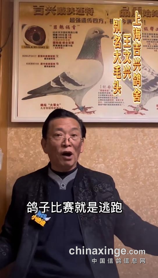 上海吉兴鸽舍王文兴,更有名的称谓是“大毛头”。著名吉兴鸽舍掌门人,赛鸽高手,在普赛、公棚战绩惊人,可谓“爱鸽养鸽50载,驰骋赛场40年”。上次我们被他的一招“美人计”训鸽法惊艳,今天继续走进这位赛鸽大师的课堂,偷偷师,取取经。