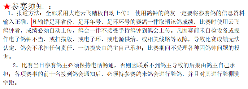再次提醒广大鸽友参赛佩戴足环、填写信息定要仔细再仔细。