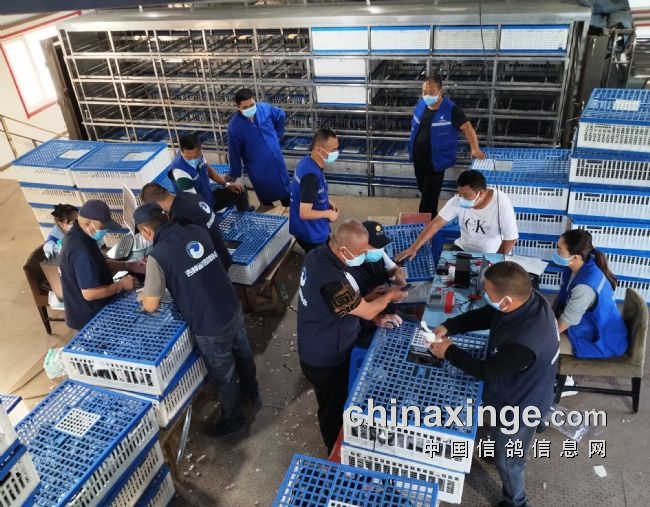 期间对电子环失灵的参赛鸽重新更换了电子环,对羽色不符的赛鸽进行更正了,裁判员和监赛鸽友代表进行了查棚。