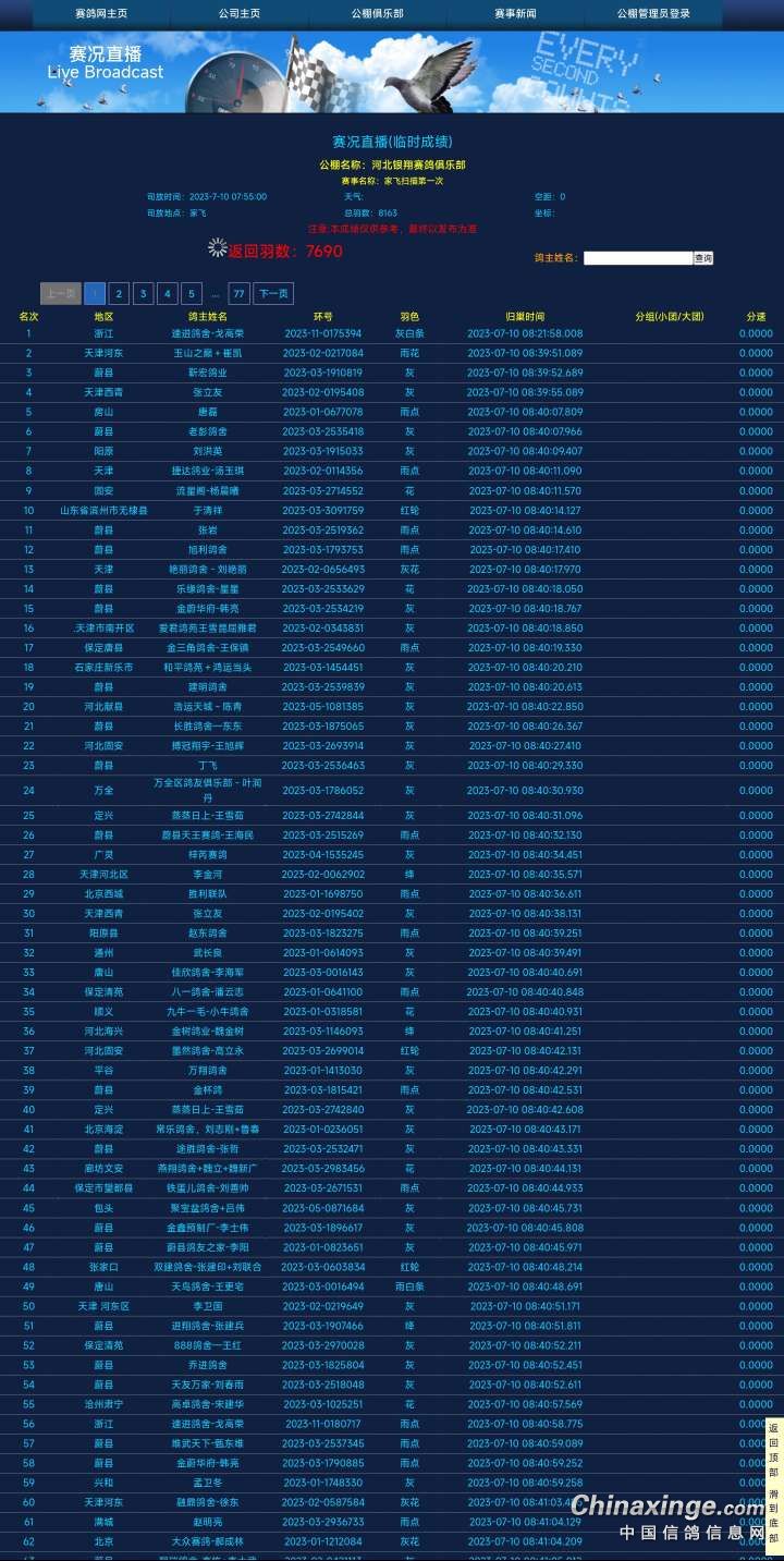 据悉,该公棚参赛费每羽收费500元,原计划举行,160公里热身赛、280公里预赛、500公里决赛,7月2日该公棚家飞扫描显示上笼8163羽,9月14日95公里收费站上笼6818羽,归巢1019羽,丢鸽5799羽。