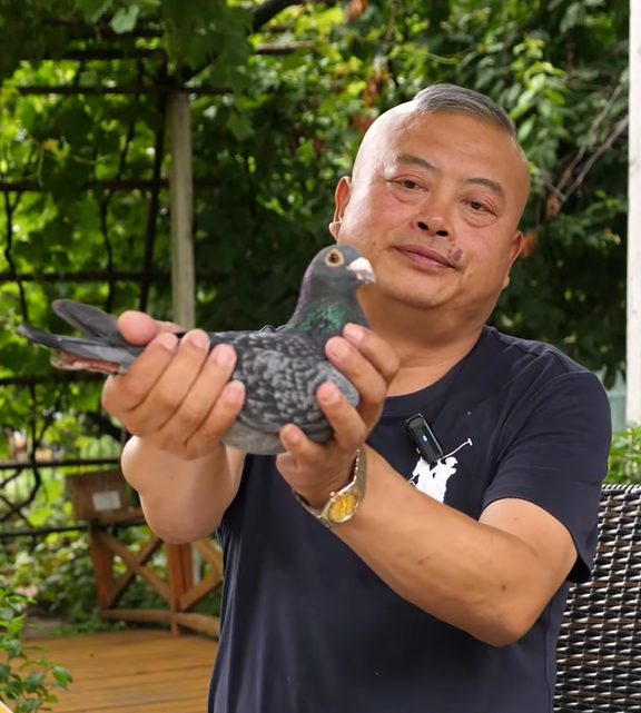 你经常会看到种鸽的父亲并不好看,摸着也松散。我去荷兰一个鸽舍,看过一只鸽子,拿起来孔雀开屏,“这马屎啊!”“No No No,张先生,你摸它这根龙骨,很粗很粗的,这是一只近亲鸽子。”他的意思就是兄妹鸽配对作出的,很近很近的血,它恰恰是巴塞罗那国际赛三名的父亲。它的母亲拿出来上手一模,哇!太漂亮太完美了,它俩就会互补,就能生出国际赛三名,也是巴塞罗那国家赛冠军。