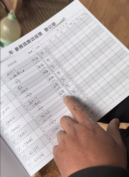 我配鸽子会想很久,很多时候都会记载,打草稿打很久,不停地修改。我的种鸽是母鸽子多一点,公鸽子少一点,公鸽子可以多配一次,其他的不行,所以说每年配对会非常谨慎。要考虑种鸽的溶血性、健康度、体型、速度,比如打云南的比赛,鸽子可以稍微大一点,但是一定要速度快,云南顺风天特别多,必须要快,所以我打云南主要是瓦特的鸽子去打。