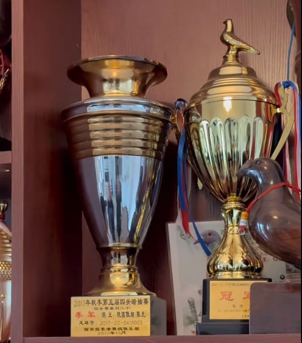 我非常爱鸽子,当时刚参加工作,我才一百块钱一个月,我老婆一百五一个月,我们俩一个月二百五十块钱。当时我看上一个老大爷的鸽子,这只鸽子要1500块钱,换算到现在相当于一只鸽子现在要好多万。我宁愿睡地上,我都把鸽子买下来,买下来就产生我的第一个冠军。我97年第一次参赛,后面每一年拿冠军,本地的好多鸽友说我一直作弊,每年都飞冠军,每年特比环也飞冠军,别人就不和我赌、不和你玩了,说我一辈子都作弊。后来我打比赛,好多人都在我楼下看,我鸽子是不是回来了。