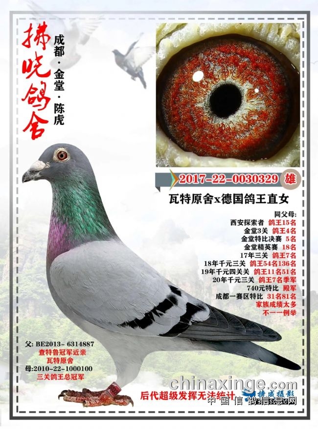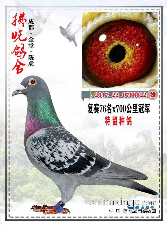 在看鸽眼方面,我主张根据品系看眼睛,就像我的伏尔布文一样,它的鸽子眼睛就非常有特点,色彩特别艳丽,这种鸽子就能飞。我们不能从眼睛看出品系,但是品系好,比如说盖比白腹号的眼睛都比较淡,不太好看,但是作为从长距离看的话不好。又比如以前最好看的眼睛,李鸟、吴淞眼睛就好看,但我们拿去打短距离就不行了。所以还是要通过品系看鸽子,通过赛场选择鸽子去送。