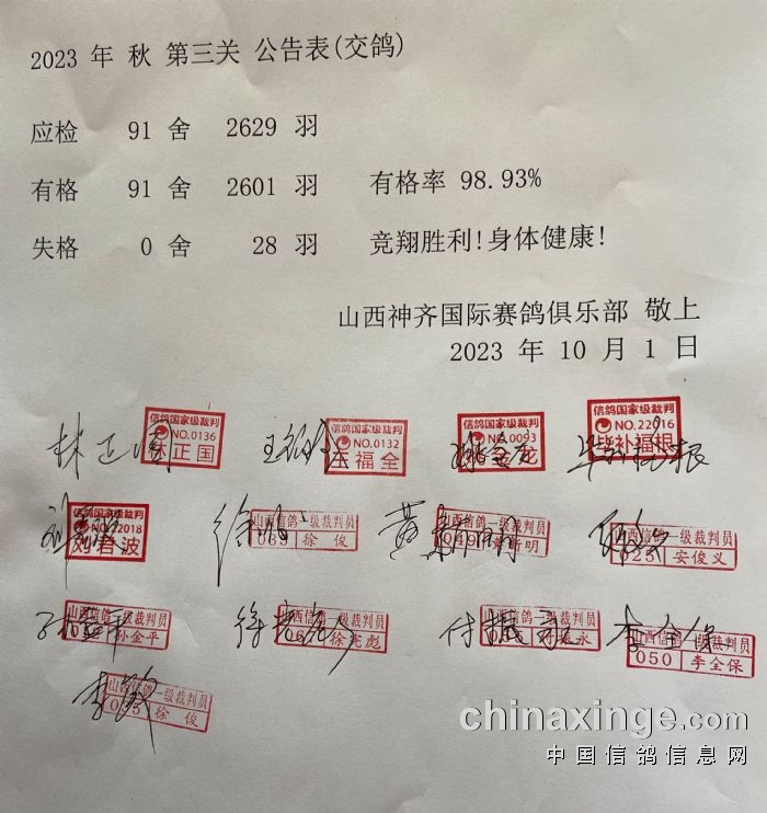10月2日早上6点29分,山西神齐国际赛鸽俱乐部四关鸽王赛第三关550公里比赛在内蒙古苏尼特左旗地区开笼,共计放飞91舍2601羽赛鸽,司放地坐标为东经112°14′22.89″,北纬44°40′46.20″。