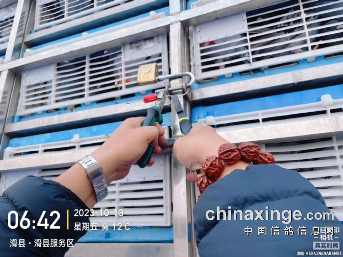 第一关于10月12日上午10点开始集鸽,俱乐部工作人员热心为鸽友们服务在集鸽检录工作中对电子环与足环匹配是否一致、羽色是否正确进行了认真检查,对检查无误的赛鸽加盖暗章并粘贴防伪贴。
