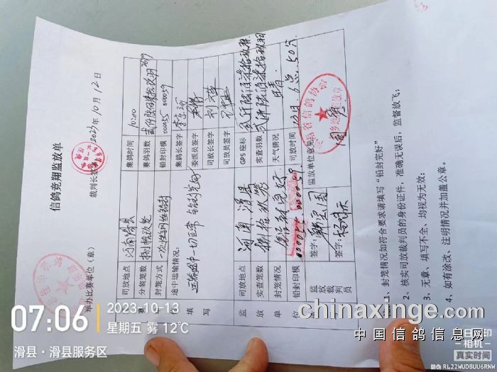 2023年北京琨泰佳华赛鸽俱乐部“试金石杯”鸽王挑战赛第一关比赛,在裁判的监督下,于10月13日上午6:50在河南滑县开笼,空距500公里,天气晴,赛鸽走势良好!预祝大家取得好成绩!