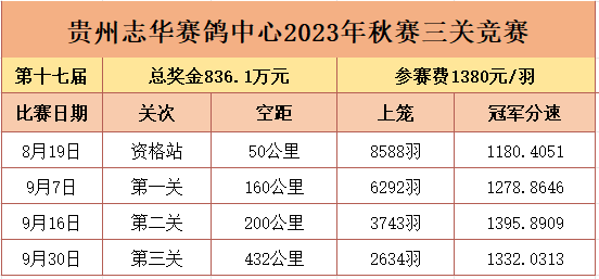 “万羽战三关,翻山夺桂冠”,这是贵州志华,一个17届老牌公棚的2023年秋季赛事。
