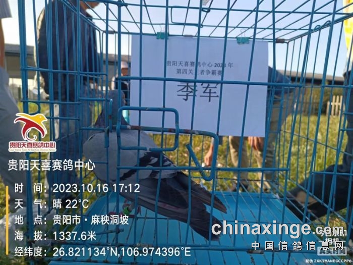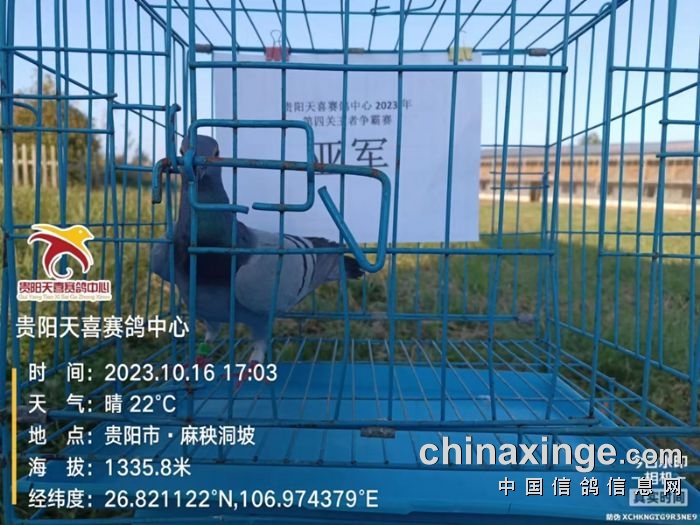 贵州贵阳天喜赛鸽中心第四关王者争霸赛,于10月16日早点7点08分在广西大塘服务区开笼,空距508公里,共计1648羽赛鸽参赛。下午16点08分,第一羽归巢鸽报到,是福鑫苑鸽舍-奚传筠的23-0982950雨点鸽,分速为940.0635米/分。之后,直至16点55分才迎来第二羽赛鸽归巢,最终当日归巢11羽赛鸽。至次日上午10点,归巢106羽。查看直播数据>>
