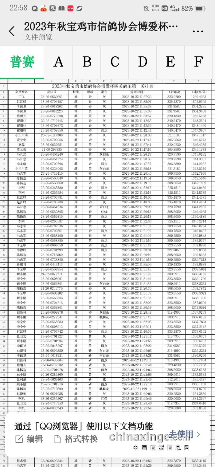 宝鸡市2023年秋季《博爱杯》首关300公里比赛顺利放飞,三个赛区大多数鸽友爱鸽均获高风速